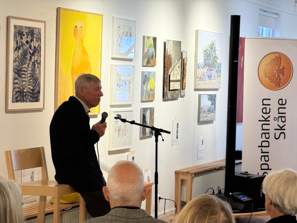 Per refererade till välkända Österlenförfattares böcker, Inge och Tomas Löfström. Vi fick också lyssna till Tomas Tranströmer och Ylva Eggehorns ”Var inte rädd”.