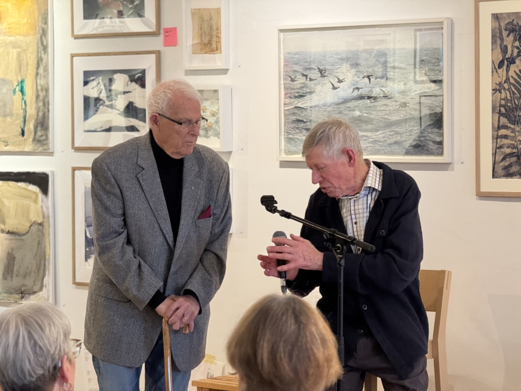 Efter årsmötet fick vi lyssna till fågelmålaren Hans Larsson som med charm och mycket underhållande berättade om sitt livslånga och uppslukande intresse för att måla fåglar, i synnerhet måsfåglar. Vi fick se bilder av hans målningar och fascinerades av detta konstnärskap.